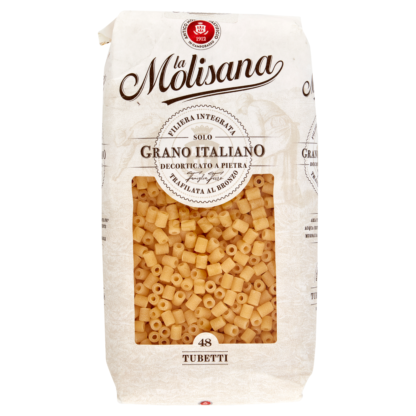 MOLISANA Tubetti N.48 delivers authentic Italian pasta crafted from high-quality durum wheat semolina. Each 500g pack provides perfectly shaped small tubes, ideal for capturing sauces and enhancing texture in soups, baked dishes, and salads. Carefully produced to maintain its firmness and flavor after cooking, this pasta ensures a refined culinary experience for home chefs and professionals alike. Available in a practical 24-pack box, it’s a reliable choice for consistent quality in bulk.