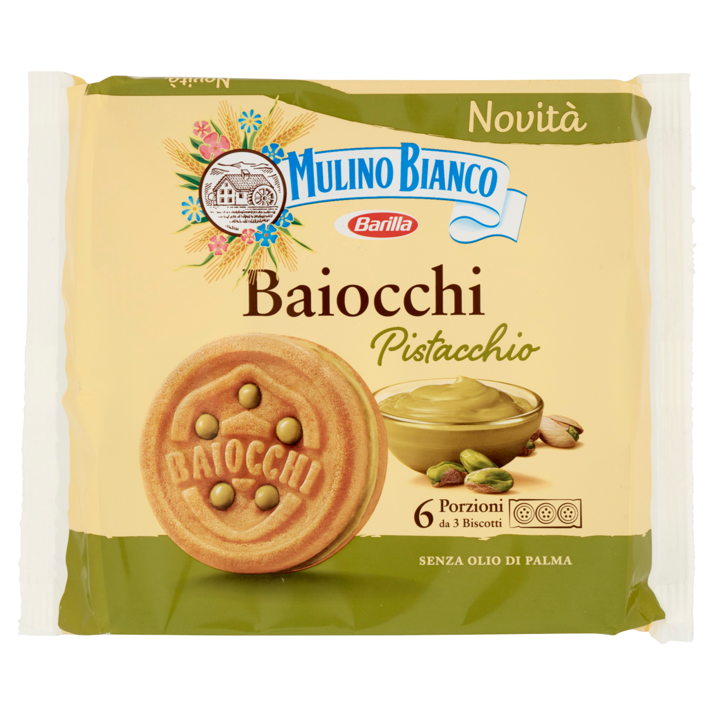 MULINO BIANCO BAIOCCHI AL PISTACCHIO 168g offers a refined blend of traditional Italian biscuit craftsmanship with the rich, nutty flavor of pistachio. Each box contains nine individually wrapped treats, ensuring freshness and convenience. Ideal for pairing with coffee or tea, these biscuits provide a sophisticated snack experience that highlights quality ingredients and authentic taste. Perfect for those seeking a premium indulgence with a distinctive pistachio twist.