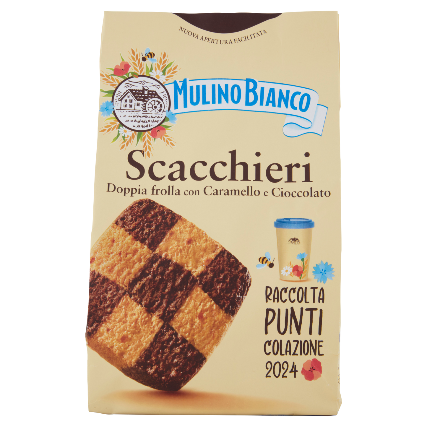 MULINO BIANCO BISCOTTI SCACCHIERI 300g offers a classic Italian biscuit experience, perfect for pairing with coffee or tea. Each box contains 12 packs, ensuring freshness and convenience. These crisp, buttery cookies feature a distinctive checkerboard pattern, combining delicate flavors and a satisfying texture ideal for sophisticated snacking or entertaining guests.
