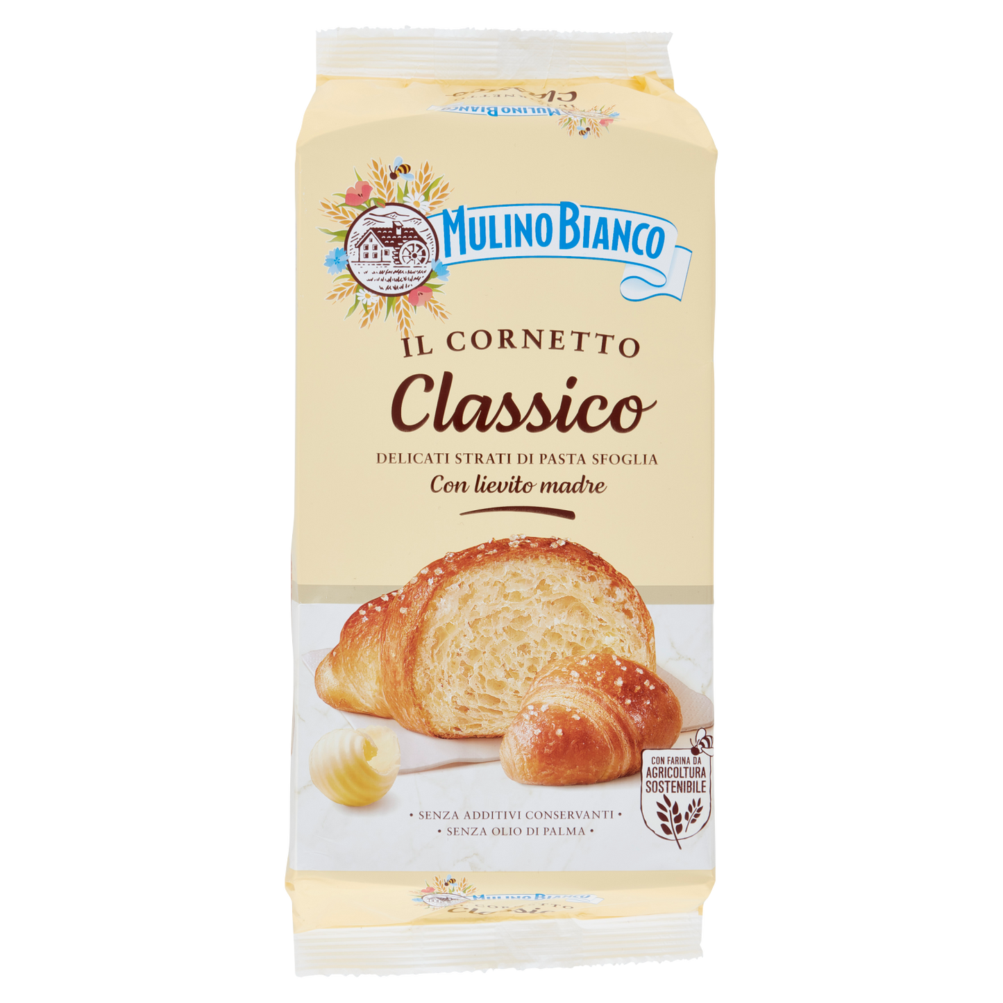 MULINO BIANCO CORNETTI CLASSICI X6 240g offers six classic Italian croissants, each crafted for a perfect balance of lightness and flavor. Ideal for breakfast or a snack, these cornetti deliver a delicate, buttery texture with a subtly sweet finish. Conveniently packaged in a box of six, they maintain freshness and quality, making them a reliable choice for those seeking authentic Italian pastry experience.