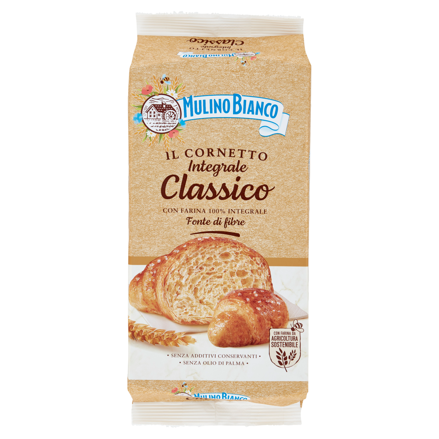 MULINO BIANCO CORNETTI INTEGRALI X6 offers six wholegrain croissants in a convenient 240g pack, ideal for a nutritious breakfast or snack. Made with whole wheat flour, these croissants provide a good source of dietary fiber, supporting digestive health. Their balanced texture and subtle sweetness make them a versatile choice for pairing with both sweet and savory toppings. Perfect for those seeking a wholesome option without compromising on taste.