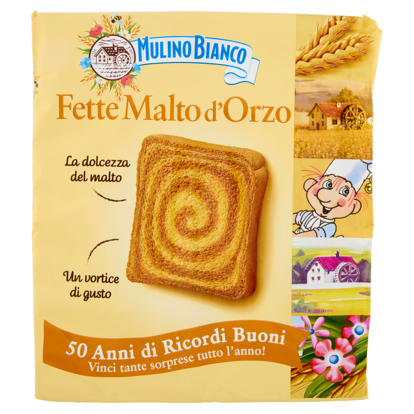 MULINO BIANCO FETTE BISCOTTATE MALTO D'ORZO offers a traditional Italian twice-baked bread enriched with malted barley, delivering a distinctive, wholesome flavor. Each 315g box contains 16 crisp slices, ideal for a balanced breakfast or a light snack. These fette biscottate provide a satisfying crunch and a source of energy, making them a versatile choice for pairing with spreads or toppings. Crafted with quality ingredients, they support a refined palate seeking authentic taste and texture.
