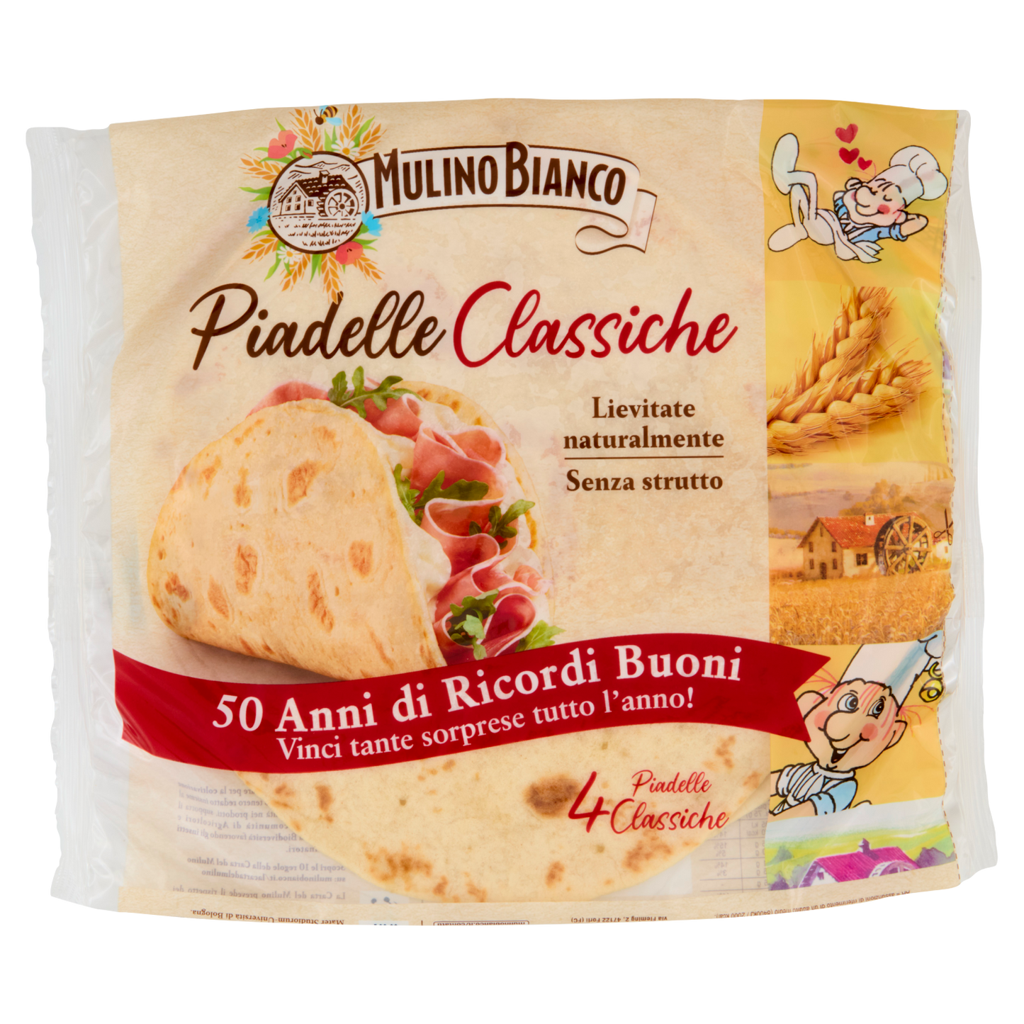 Mulino Bianco PiadeLLe Classiche X4 offers a classic Italian snack experience with four packs of traditional flatbread, each weighing 300 grams. Perfect for versatile use, these piadeLLe can be enjoyed plain or filled with your favorite ingredients, providing a convenient and authentic option for meals or snacks. Their consistent quality and balanced texture make them ideal for both casual and gourmet preparations.