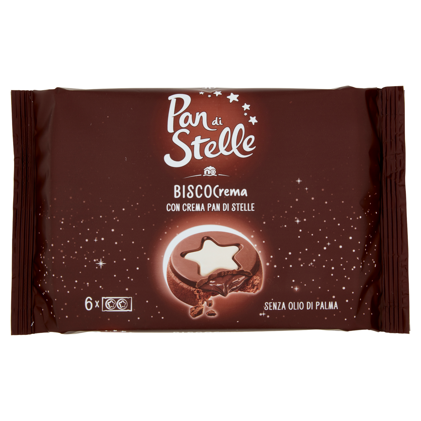 PANDISTELLE BISCOCREMA offers a refined blend of delicate biscuit layers filled with a smooth cream, each 28g portion crafted for optimal taste and texture. Sold in packs of six, with ten boxes per carton, this product is ideal for gourmet snacking or elegant dessert presentations. Its balanced sweetness and quality ingredients make it a sophisticated choice for discerning palates.
