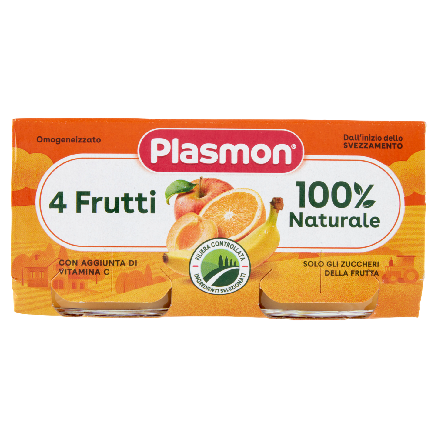 PLASMON OMOGENEIZZATO 4 FRUTTI is a carefully crafted fruit puree blend, combining four selected fruits to provide a balanced and nutritious option for infants. Each pack contains two 80g portions, ideal for on-the-go feeding or preparing fresh meals. The product supports healthy development by offering natural vitamins and gentle flavors suitable for early taste exploration. Packed in boxes of 12, it ensures convenience and consistent quality for caregivers seeking reliable baby nutrition.