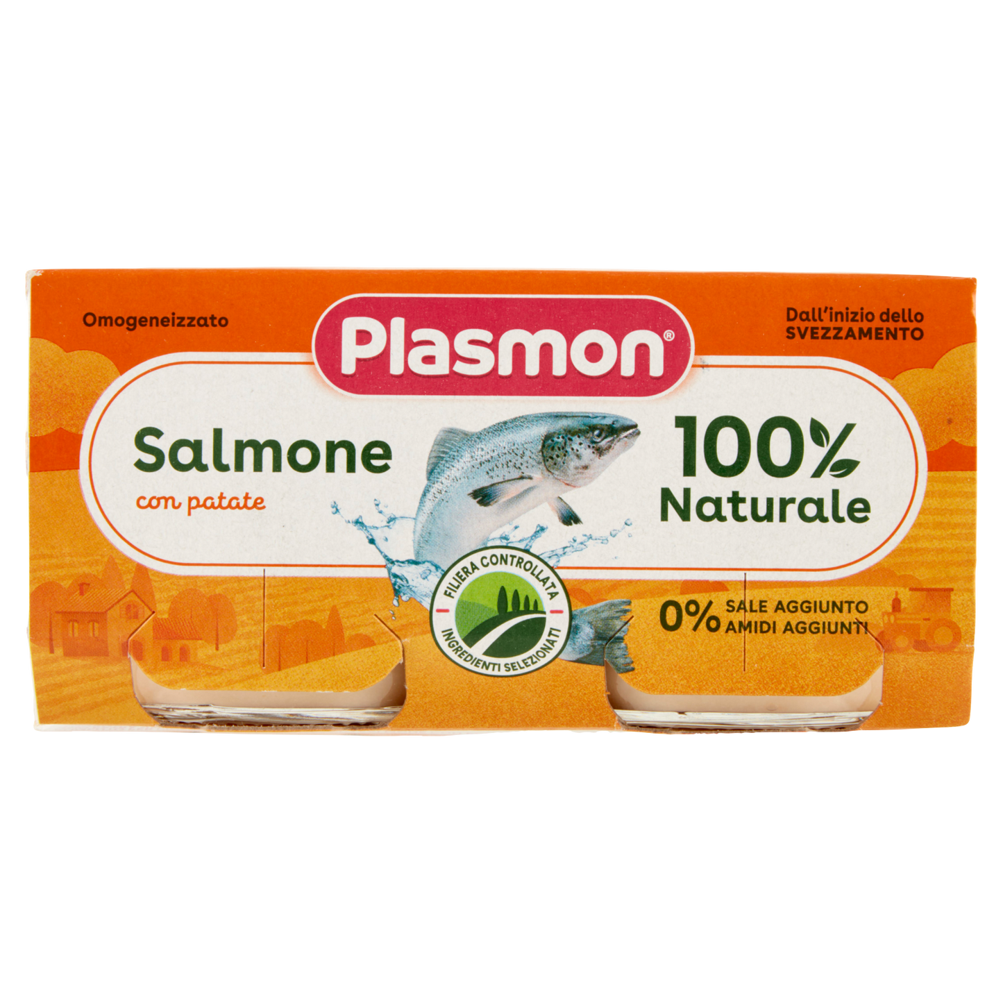 PLASMON Omogeneizzato Salmone con Verdure offers a nutritious blend of high-quality salmon and carefully selected vegetables, designed to support healthy infant growth. Each 80g jar ensures a balanced introduction to proteins and essential nutrients, promoting digestive comfort and development. Sold in packs of two for convenient serving and freshness, this 160g total provides a reliable meal option for early weaning stages. Perfectly portioned and expertly prepared, it fits seamlessly into a well-rounded infant diet.
