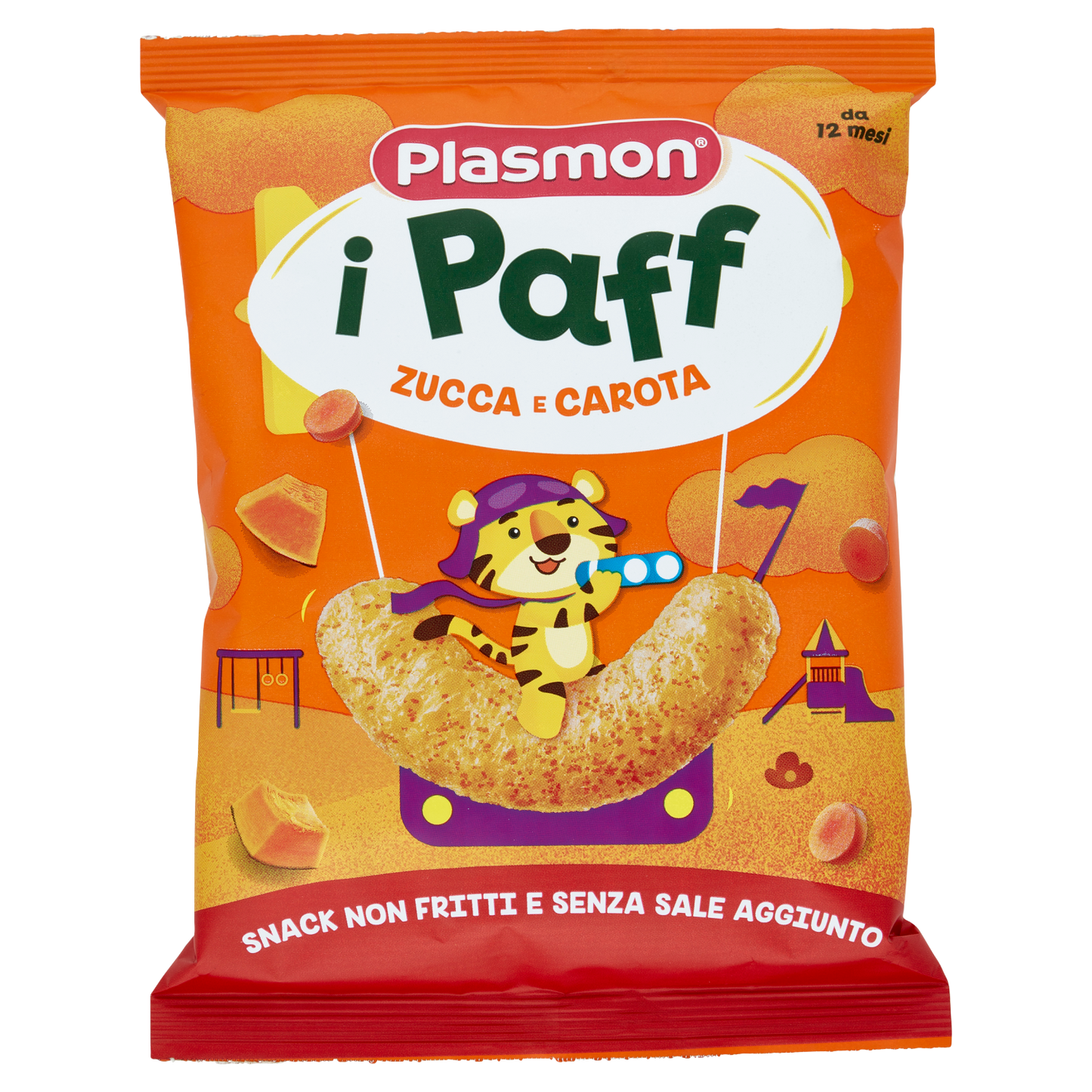 PLASMON PAFF ZUCCA CAROTA 15g (5 in a box) offers a convenient snack combining the natural sweetness of pumpkin and carrot in a light, crispy form. Designed to provide gentle nutrition, it is ideal for toddlers and young children, supporting their early eating development. Each bite delivers essential vitamins and a delicate texture that encourages chewing skills, making it a practical and healthy choice for busy parents seeking balanced snacks. The five-pack packaging ensures freshness and easy portion control on the go.