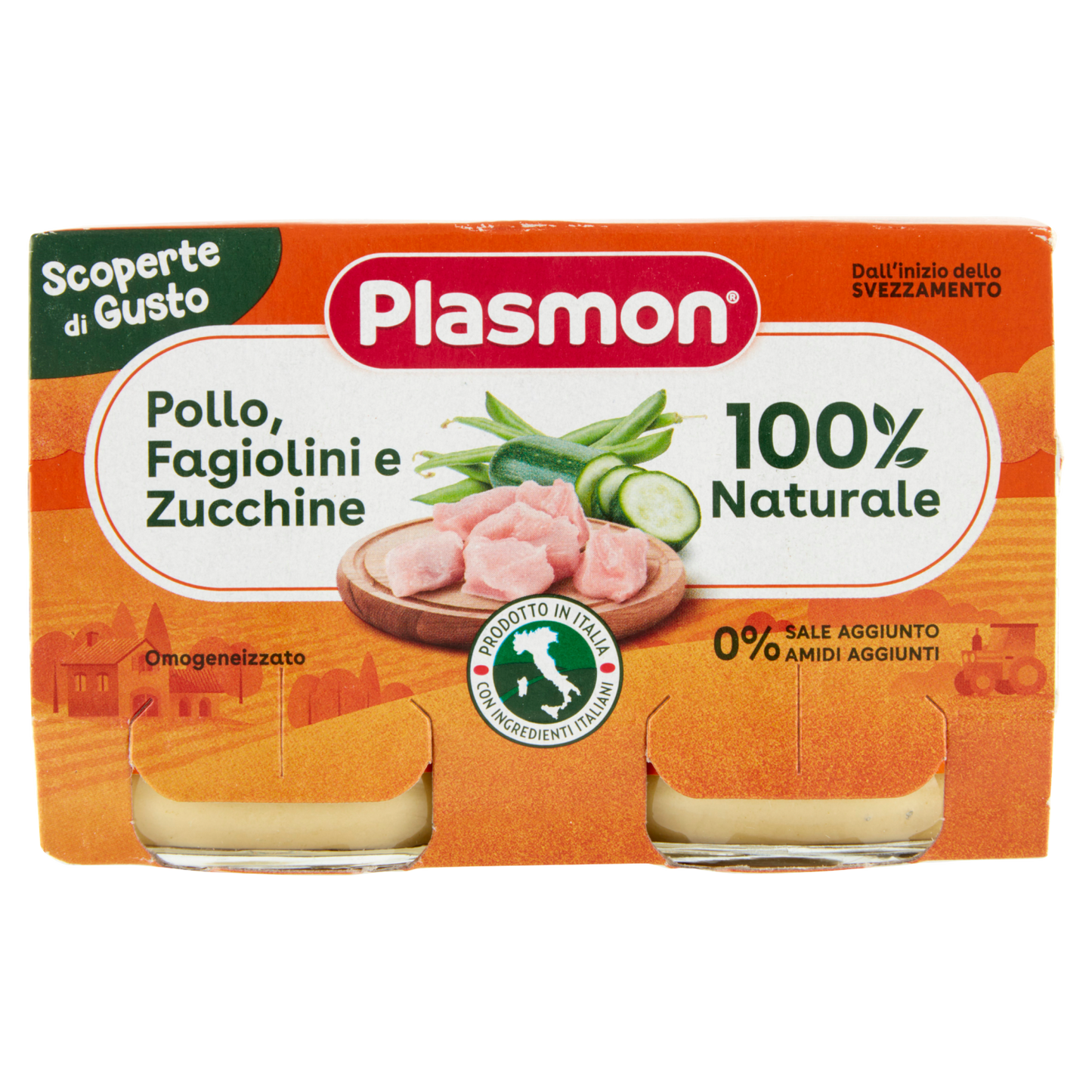 This pack contains two 120g portions of Plasmon baby food featuring chicken, green beans, and zucchini. Designed to deliver balanced nutrition, it combines high-quality protein from chicken with the fiber and vitamins found in fresh vegetables. Ideal for introducing diverse flavors and essential nutrients in early childhood diets, the convenient packaging supports easy portion control and on-the-go feeding. Suitable for parents seeking a dependable, wholesome meal option for their little ones.