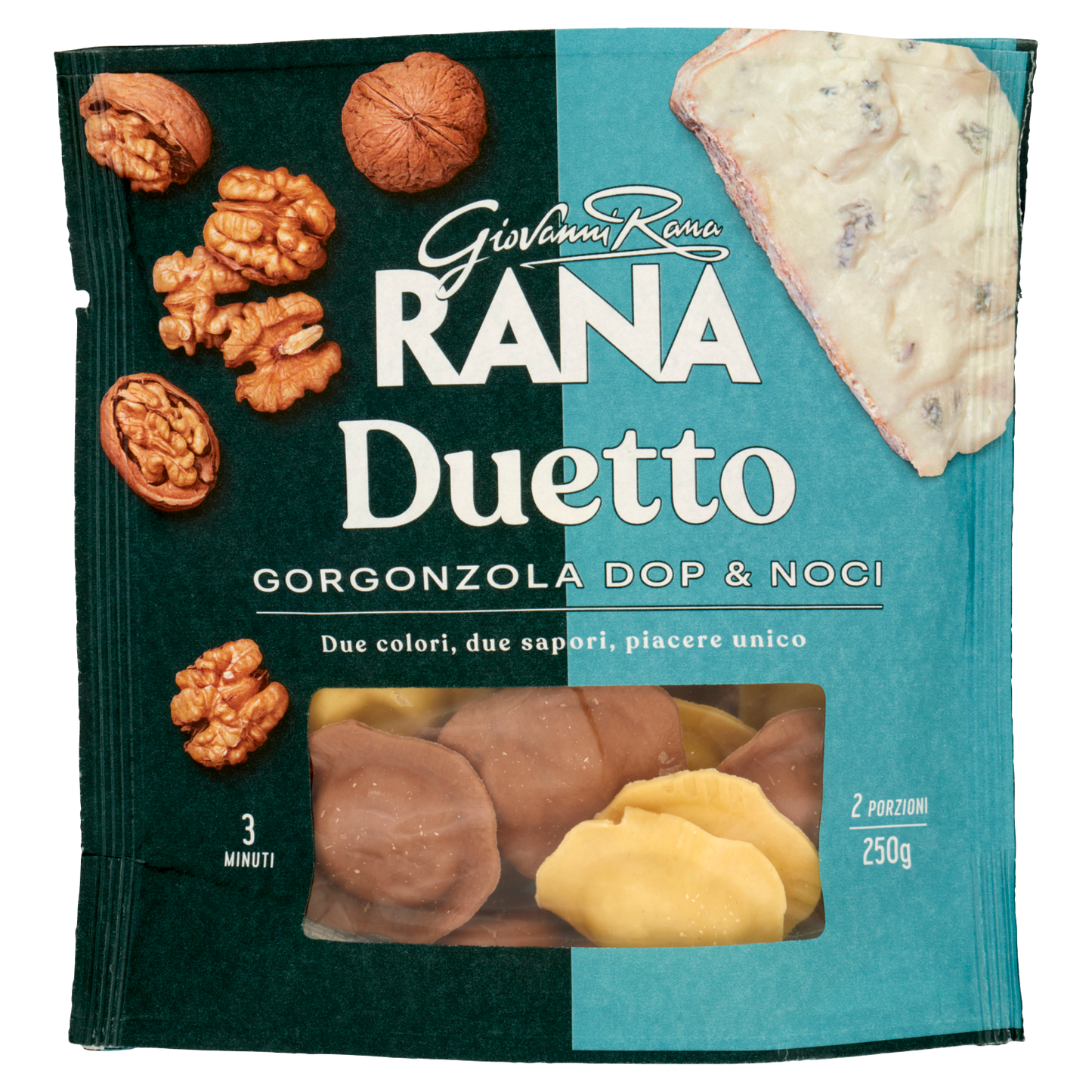 Experience the refined taste of RANA Duetto Noci e Gorgonzola, a gourmet 250g pack featuring four delicate ravioli. Filled with creamy Gorgonzola and crunchy walnuts, this artisanal pasta offers a perfect balance of bold and nutty flavors. Ideal for creating sophisticated meals with minimal effort, it brings Italian culinary tradition directly to your plate.