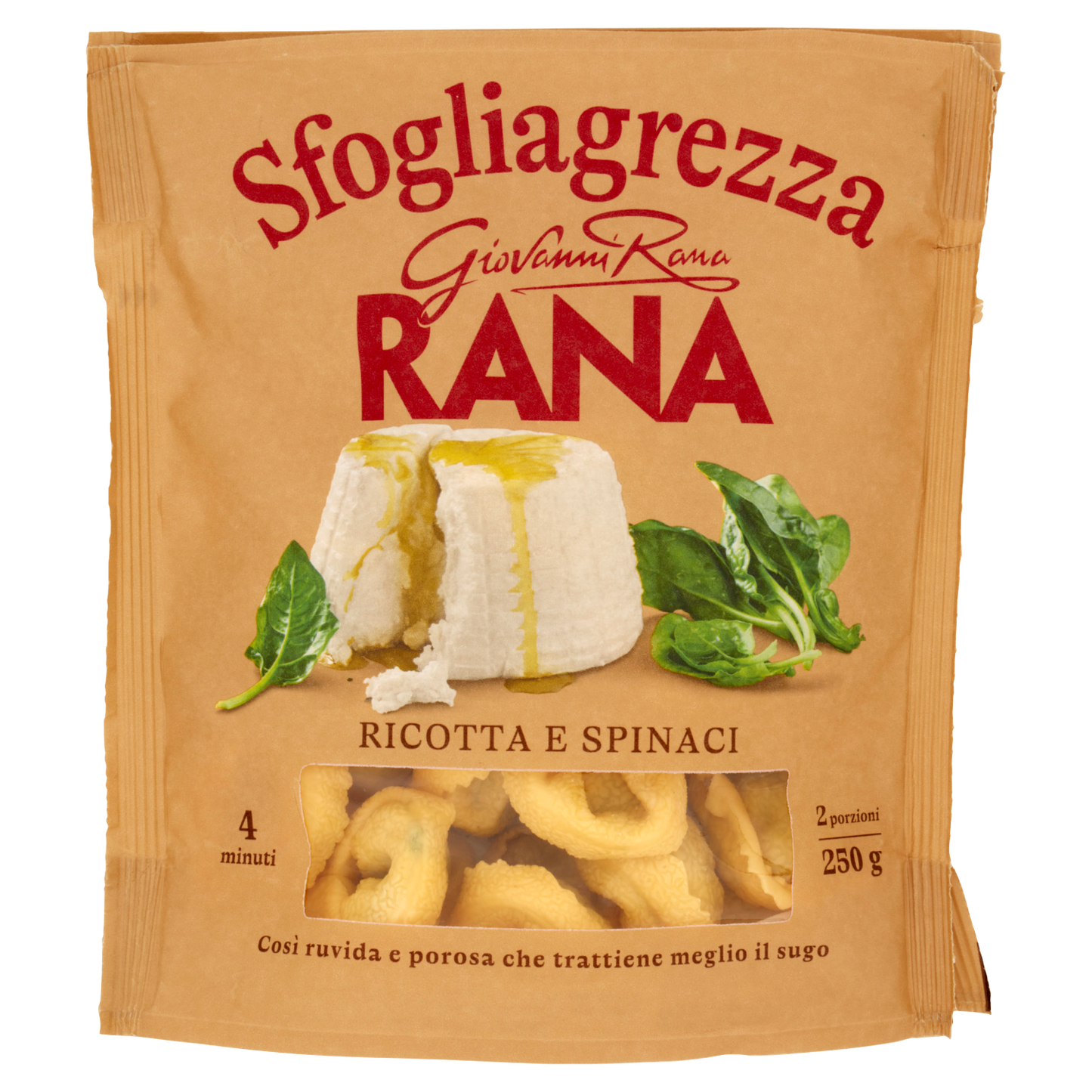 RANA Sfogliagrezza Tortellini Ricotta e 250g offers a refined Italian culinary experience with its delicate fresh pasta filled with creamy ricotta cheese. Crafted for authenticity, each 250g pack contains four artisanal tortellini, ideal for sophisticated meals. Perfect for chefs seeking high-quality ingredients that combine traditional technique with rich, balanced flavor.
