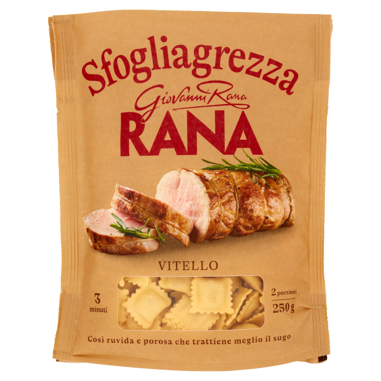 Rana Sfogliagrezza Vitello 250g offers delicate veal-filled pasta crafted with expert precision. Each box contains four portions designed to deliver a refined culinary experience, highlighting tender veal enclosed in thin, textured sheets of dough. Ideal for those seeking gourmet quality and authentic Italian flavors, this product combines traditional techniques with premium ingredients to elevate your meals.
