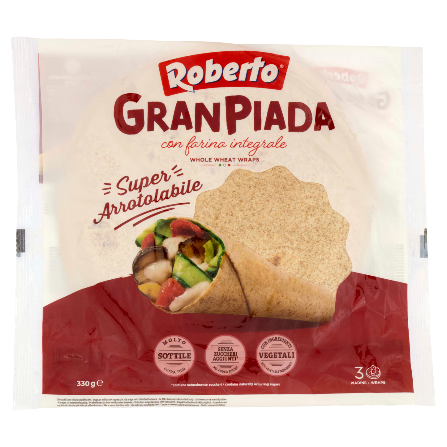 ROBERTO GRAN PIADA INTEGRALE 330g (10 in a box) offers a wholesome choice for your meals, crafted from whole grain flour for enhanced fiber content. Each piada balances traditional Italian flavors with nutritional benefits, ideal for those seeking hearty wraps or flatbreads with a healthier profile. The pack of ten ensures convenience for meal prepping or sharing. Suitable for a variety of fillings, it supports diverse culinary applications while maintaining quality and texture.