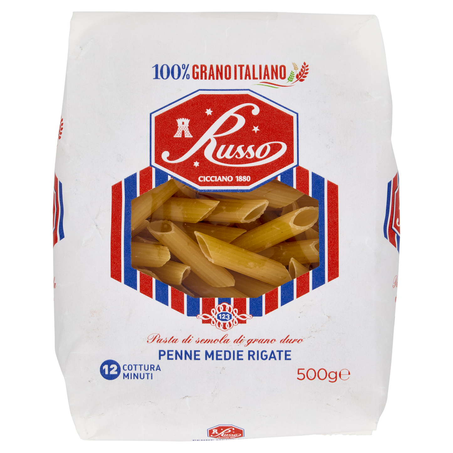 RUSSO Pasta di Semola Penne Medie Rigate offers a premium quality durum wheat pasta with a traditional ridged texture, ideal for holding sauces. Each 500g pack delivers authentic Italian flavor and versatility for a wide range of dishes. Sold in a box of 20, it’s perfect for both commercial kitchens and dedicated home chefs seeking consistent, high-quality pasta.