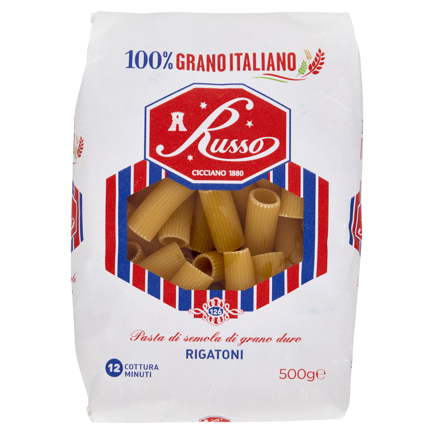 RUSSO Pasta di Semola Rigatoni 500g offers authentic Italian quality with its perfectly shaped ridged tubes, ideal for holding sauces. Made from carefully selected durum wheat semolina, this pasta maintains firm texture and bite when cooked al dente. Supplied in bulk (20 packs per box), it suits professional kitchens seeking consistent performance and traditional taste in classic rigatoni dishes.
