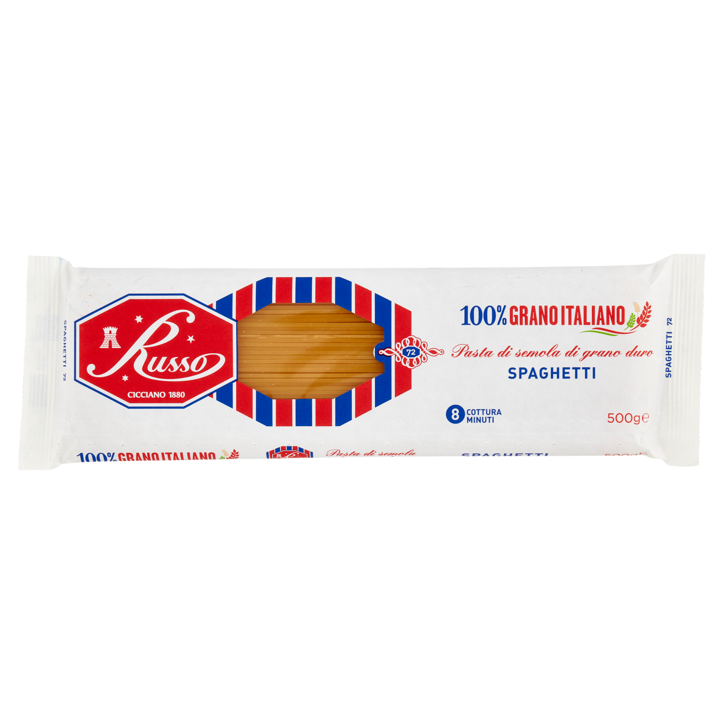 RUSSO Pasta di Semola Spaghetti 500g offers authentic Italian quality with its finely milled durum wheat semolina. Each pack contains 500 grams of perfectly crafted spaghetti, ideal for showcasing traditional sauces and enhancing your culinary creations. Supplied in a case of 24, this pasta maintains excellent texture and firmness when cooked, making it a reliable choice for professional kitchens and pasta enthusiasts seeking consistent, superior results.