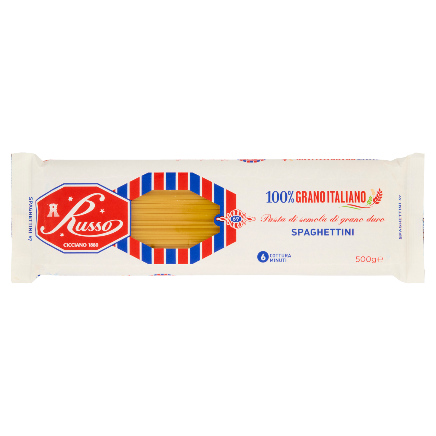 RUSSO Pasta di Semola Spaghettini 500g offers a premium-quality durum wheat semolina pasta, delivering an authentic Italian experience. Its thin, delicate strands cook evenly to a perfect al dente texture, ideal for light sauces and refined dishes. Packaged in 500g portions with 24 units per box, this spaghettini is suited for professional kitchens seeking consistency and traditional flavor in every serving.