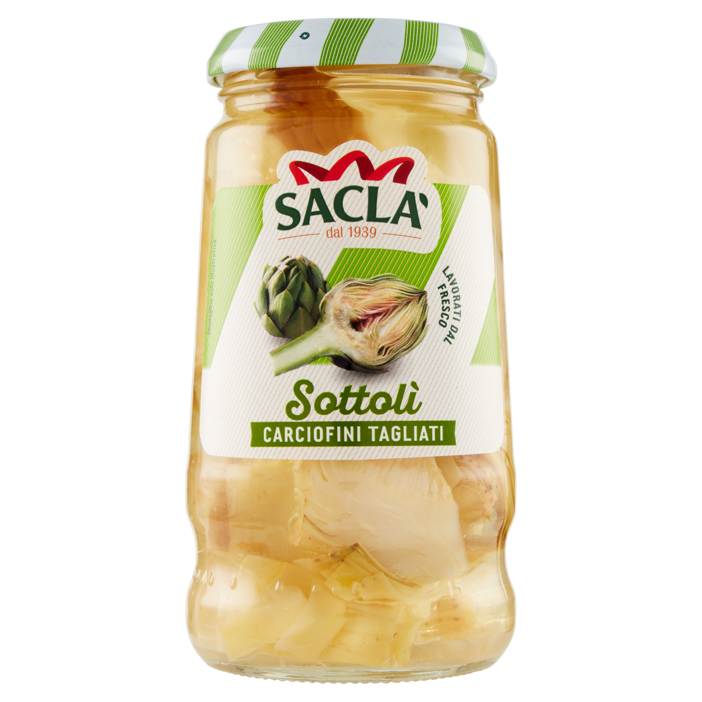 SACLA' Sottoli' Carciofini Tagliati offers premium cut artichokes preserved in oil, ideal for enhancing salads, antipasti, and gourmet recipes. Packaged in a convenient 285g jar and sold in boxes of 12, these artichokes provide consistent quality and rich flavor. Their tender texture and authentic taste make them a versatile ingredient for both home chefs and professionals aiming to add a refined touch to Mediterranean-inspired dishes.