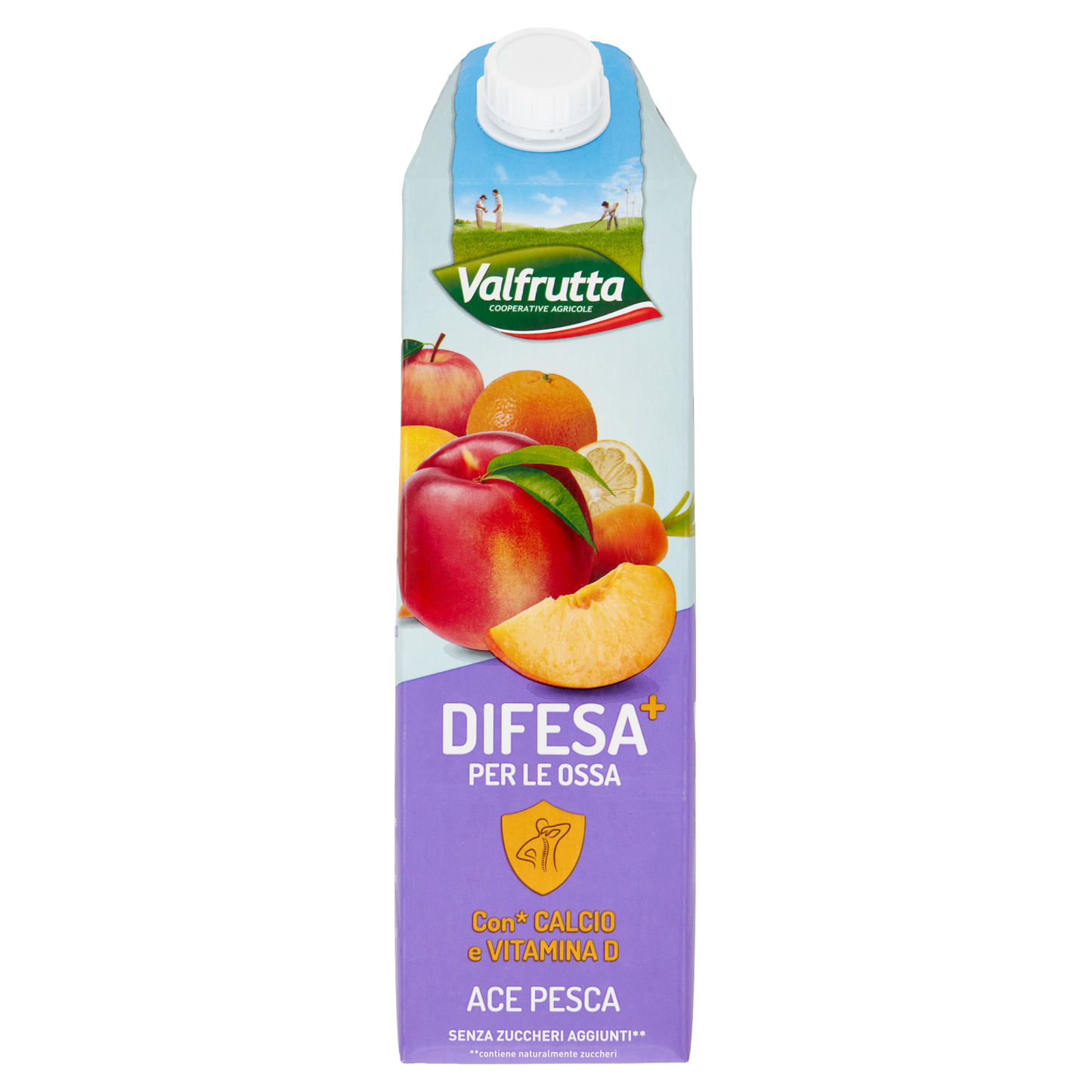 VALFRUTTA ACE PESCA DIFESA PER LE OSSA 1lt is a carefully formulated juice blend designed to support bone health. Combining the benefits of peach along with essential vitamins A, C, and E, it contributes to the maintenance of a healthy skeletal system. Presented in convenient 1-liter bottles, sold in packs of six, this product ensures consistent daily intake for long-term support. Ideal for those seeking expert-backed nutritional support to help strengthen bones naturally.