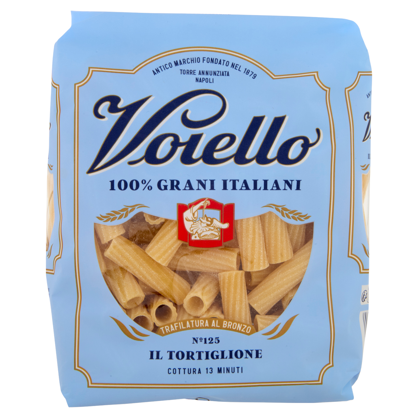 Voiello Tortiglioni 500g offers a premium pasta experience with its distinctive ridged, tubular shape that expertly holds sauces for enhanced flavor in every bite. Crafted from high-quality durum wheat semolina, this pasta delivers an authentic Italian texture and al dente firmness. Ideal for both traditional and contemporary recipes, it provides consistent cooking results, making it a reliable choice for culinary professionals and enthusiasts seeking excellence in pasta dishes. Packaged in convenient 500g portions, with 16 boxes per case, it suits both commercial kitchens and gourmet home cooking.