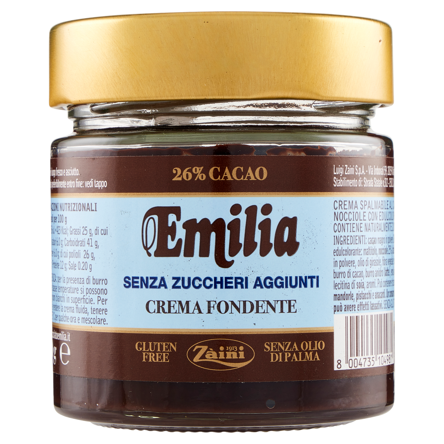 ZAINI EMILIA CREMA FONDENTE offers a rich, intense dark chocolate experience with no added sugar, ideal for those seeking a healthier indulgence. Presented in convenient 200g portions with 12 units per box, it combines quality and practicality for both personal enjoyment and professional use. This expertly crafted chocolate spread delivers deep cocoa flavor without compromising on dietary preferences.